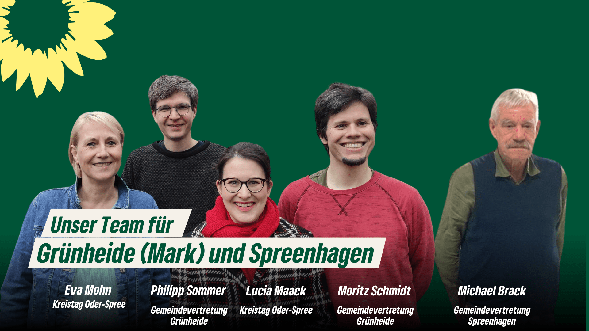 „Wir freuen uns, dass wir ein gutes Team für die Wahlen am 09.06.24 aufstellen konnten. Wir möchten gemeinsam mit den Bürger*innen von Grünheide und Spreenhagen eine gerechte Daseinsfürsorge entwickeln, welche die Besonderheiten des ländlichen Raumes als solche bewahrt und dabei ein modernes Leben ermöglicht. Unsere Hauptziele sind die Einführung eines Rufbussystems für Grünheide und Spreenhagen analog zum Dalli-Bus im Amt Scharmützelsee, die Bewahrung der Naturschätze unserer Region und die kritisch-konstruktive Begleitung der weiteren Entwicklung Teslas.“
